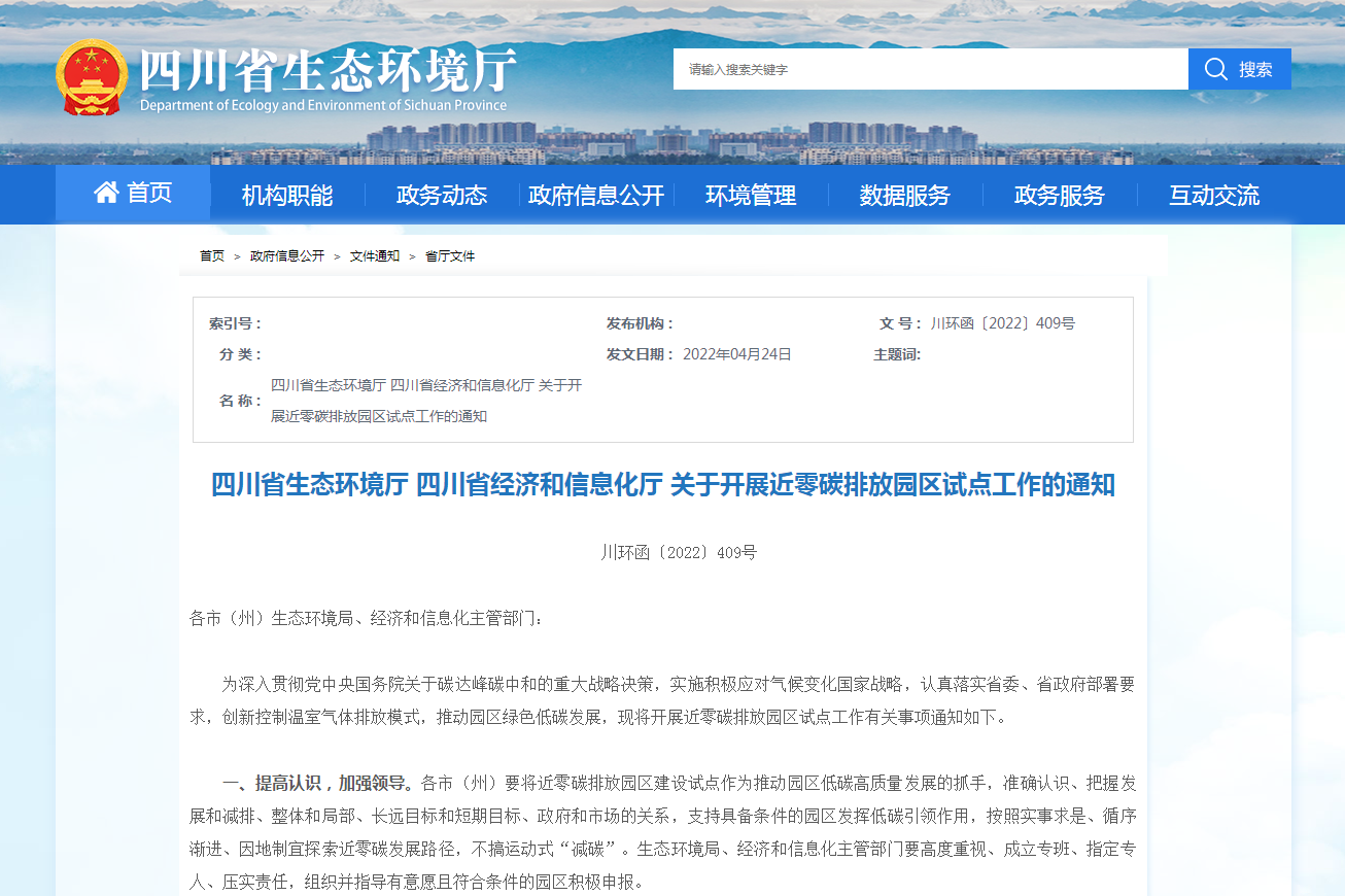 地方政策四川:2025年前建成約20個(gè)近零碳排放園區(qū)