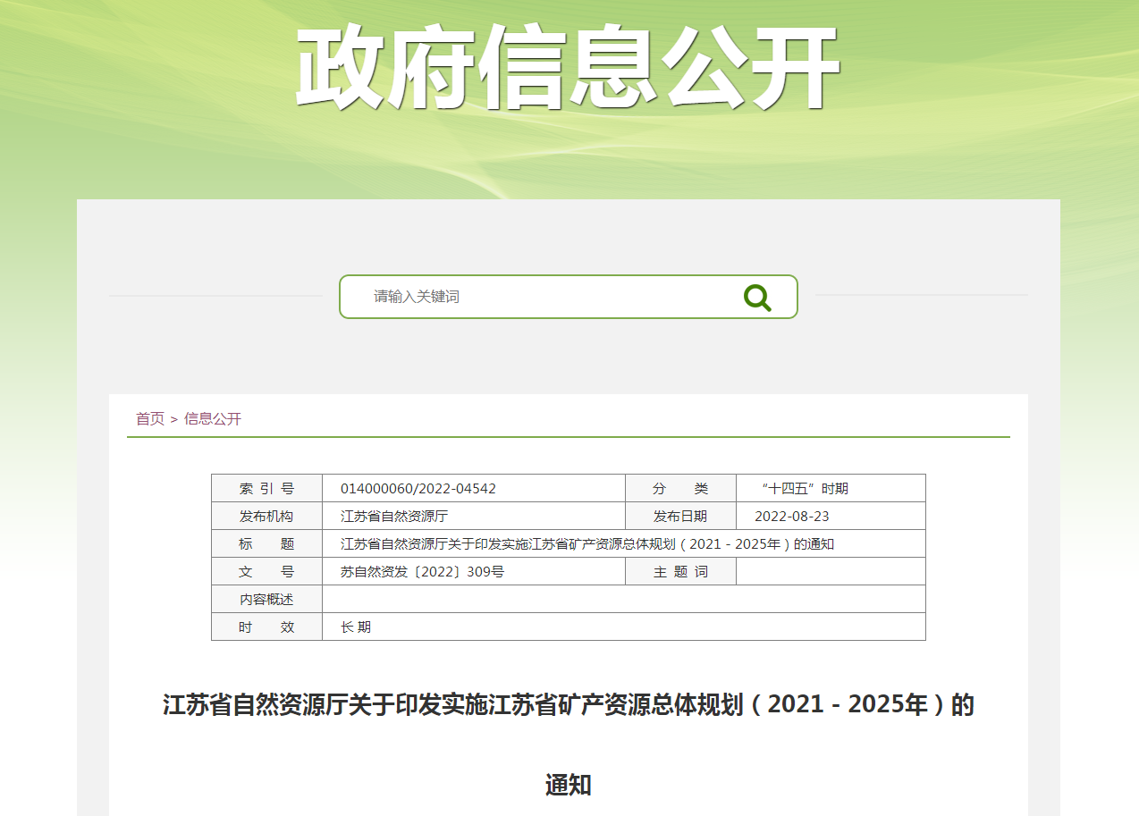 地大熱能地熱能開發(fā)利用:《江蘇省礦產資源總體規(guī)劃(2021-2025年)》(以下簡稱《規(guī)劃》)業(yè)經自然資源部批準,并經江蘇省政府同意,近日印發(fā)。