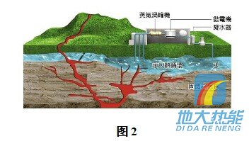 1)熱干巖過程法.與那些只從火山活動(dòng)頻繁地區(qū)的溫泉中提取熱能的方法相比,熱干巖過程法將不受地理?xiàng)l件限制,可以在任何地方進(jìn)行熱能開采.首先將水通過壓力泵壓入地下4~6 km深處,此處巖石層的溫度大約在200℃左右.水在高溫巖石層被加熱后,通過管道加壓被提取到地面并輸入到熱交換器中,熱交換器推動(dòng)汽輪發(fā)電機(jī)將熱能轉(zhuǎn)化成電能.同時(shí)推動(dòng)汽輪機(jī)工作的熱水經(jīng)冷卻后可重新輸入地下供循環(huán)使用.這種地?zé)岚l(fā)電的成本與其他再生能源的發(fā)電成本相比是有競(jìng)爭(zhēng)力的,而且這種方法在發(fā)電過程中不產(chǎn)生廢水、廢氣等污染,所以它是一種未來的新能源.
