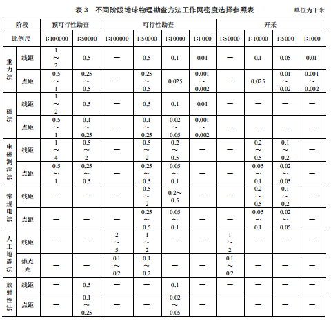 h) 地球物理方法實物工作量應(yīng)滿足相應(yīng)比例尺(參見表 3)及探測深度要求;后續(xù)涉及鉆探工作的應(yīng)有異常驗證和再解釋的設(shè)計內(nèi)容。