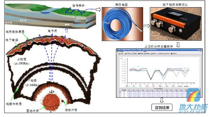 1、探測原理 UMF-Y05型探測系統(tǒng)是在地表通過探針接收來至地球內(nèi)部的地下磁流體電磁波,經(jīng)探測電纜到地下磁流體探測儀,由探測儀提取特征信息并送上位機(jī)綜合分析得出探測結(jié)果。