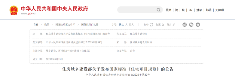 近日,住房城鄉(xiāng)建設(shè)部批準(zhǔn)《住宅項(xiàng)目規(guī)范》為國(guó)家標(biāo)準(zhǔn),編號(hào)為GB 55038-2025,自2025年5月1日起實(shí)施。住房城鄉(xiāng)建設(shè)部發(fā)布的公告明確,本規(guī)范為強(qiáng)制性工程建設(shè)規(guī)范,全部條文必須嚴(yán)格執(zhí)行?,F(xiàn)行工程建設(shè)標(biāo)準(zhǔn)中有關(guān)規(guī)定與本規(guī)范不一致的,以本規(guī)范的規(guī)定為準(zhǔn)。新規(guī)范以住宅項(xiàng)目整體為對(duì)象,以安全、舒適、綠色、智慧為目標(biāo),在規(guī)模、布局、功能、性能和關(guān)鍵技術(shù)措施等方面,對(duì)住宅項(xiàng)目的建設(shè)、使用和