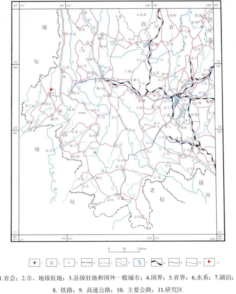 騰沖縣位于高黎貢山西側(cè),總體地勢(shì)北高南低,山脈走向?yàn)楸睎|一西向及南北向,與區(qū)域構(gòu)造線基本一致。高黎貢山與怒江并列向南蜿誕,高黎貢山峰脊一線海拔多在3000m以上;而怒江河谷海拔僅500—900m,區(qū)內(nèi)最高峰為高黎貢山中段的大腦子,海拔3780.9m;最低點(diǎn)為盈江縣拉沙河與穆雷江交匯處,海拔僅210m;最大高差達(dá)3570.9m,一般高差在400—2000m之間,屬中高山中一深切割地區(qū)。縣城西側(cè)為高中山地貌景觀,谷深坡陸;東側(cè)為中山山地稍為平緩,但切割密度較大;中部為斷陷谷地,河流階地發(fā)育,地勢(shì)平坦開(kāi)闊。騰沖地區(qū)構(gòu)造運(yùn)動(dòng)活躍、斷裂構(gòu)造發(fā)育、巖漿活動(dòng)頻繁、火成巖分布廣泛、新生代火山活動(dòng)、現(xiàn)代水熱活動(dòng)異常強(qiáng)烈,溫沸泉眾多。
