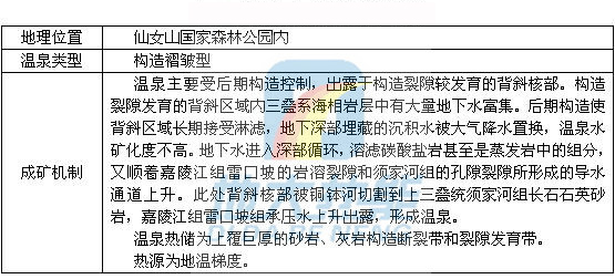 川東仙女山溫泉風景仙女山溫泉地處達州市仙女山腳的銅缽河畔、仙女山國家森林公園,距平灘場鎮(zhèn)1公里。據(jù)勘測,該溫泉水質優(yōu)良,水溫適宜,流量大并且穩(wěn)定,富含 多種對人體有益的微量元素和礦物質。其中硒和鍶的含量超過國家級規(guī)定的標準,對人體具有較好的保健功能。經(jīng)預測,該溫泉可達國家級溫泉標準,開發(fā)的前景廣闊,開發(fā)價值高。規(guī)劃將溫泉水引至對巖竹海中進行開發(fā),新建接待服務設施,開展游泳、沖浪、醫(yī)療保健、休閑度假等活動項目。擴建平灘經(jīng)溫泉到馬家的公路,新建景區(qū)游道,完善電力設施、通訊設施和提高電視收視效果,達到日接待能力上千人次的規(guī)模。