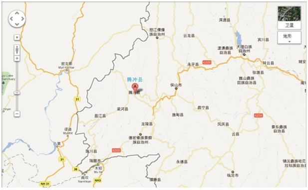 云南騰沖縣位于云南省西南部,西部與緬甸毗鄰,歷史上曾是古西南絲綢之路的要沖。地理座標(biāo)為東經(jīng)98°29’,北緯25°1’。