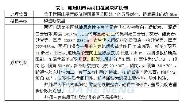 兩河口溫泉地處峨眉山山區(qū)兩河口地下3000米處深處循環(huán)增溫的承壓氡溫泉,山區(qū)環(huán)境優(yōu)美、生態(tài)良好,堪稱“洗肺”的天然氧吧。峨眉山(氡)溫泉是特殊地質(zhì)斷層深部承壓循環(huán)所形成的特定化學(xué)特征的熱礦水。探鉆井深1652m,井口自溢水溫45℃,其中富含偏硅酸、鐳、氡和硫化氫等50余種有益人體的礦物質(zhì)和微量元素。具有很高的醫(yī)療價(jià)值,能有效治療多種慢性疾病,對(duì)心律和血壓的調(diào)節(jié)、慢性類風(fēng)濕關(guān)節(jié)炎和高血壓以及減肥的治療效果十分顯著。